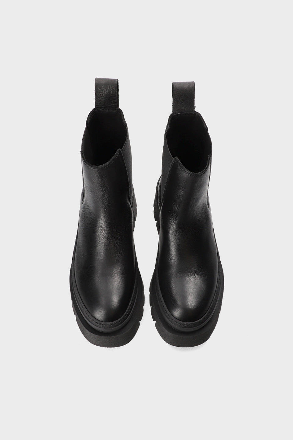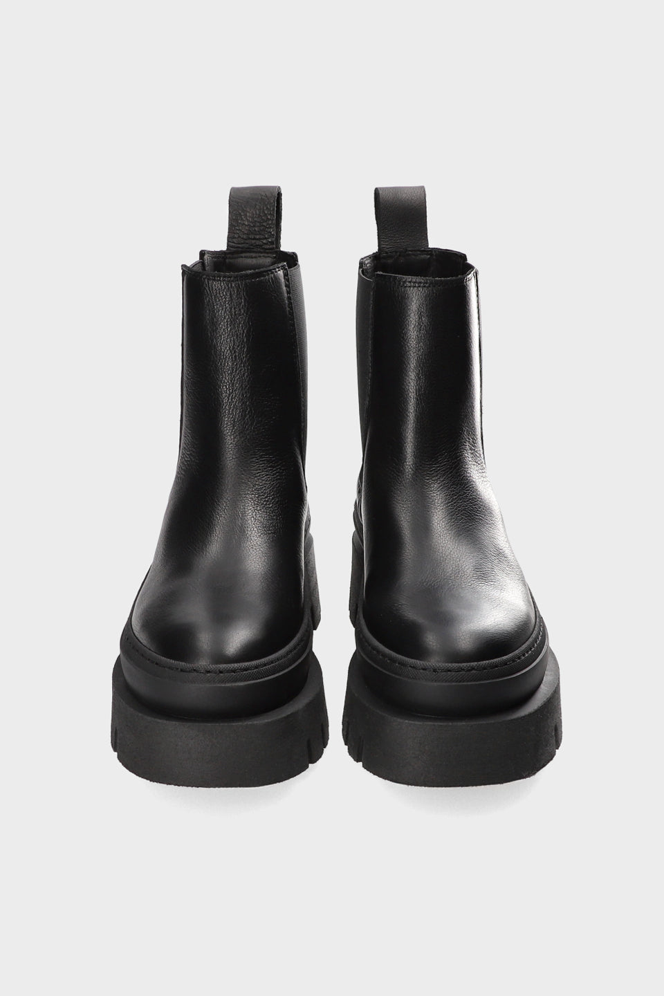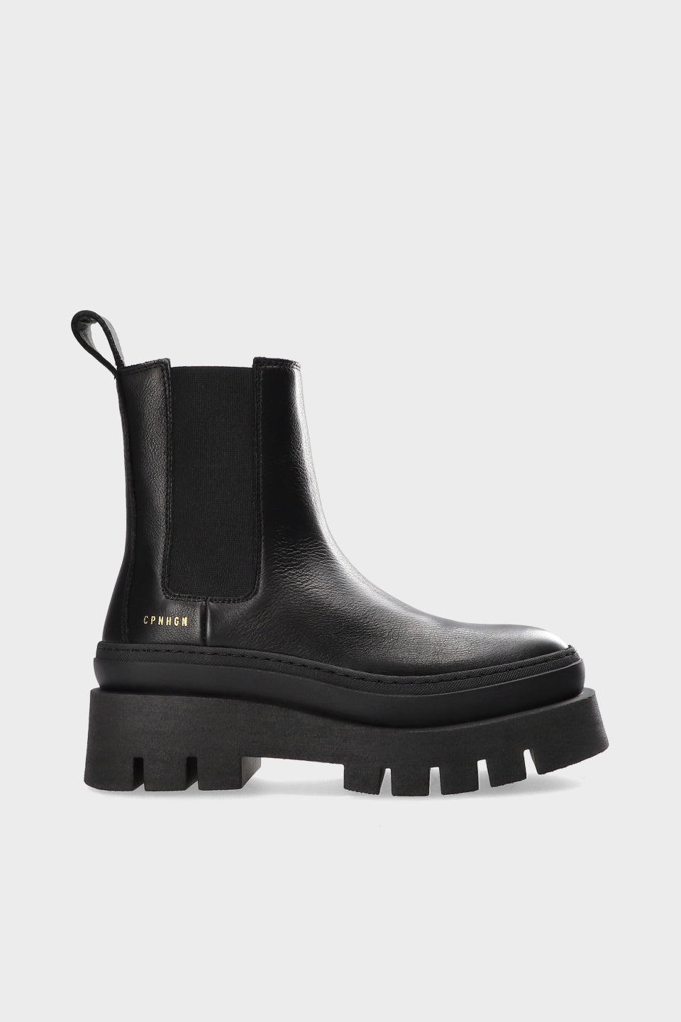 . Stivaletti Chelsea alti fino alla caviglia in morbida pelle liscia. Silhouette robusta. Inserti elastici con dettagli ricamati. Passante posteriore. Logo color oro all'esterno. Punta rotonda. Suola platform con profilo distintivo e tacco a blocco. Stivaletti Chelsea espressivi con elementi robusti e dettagli minimalisti.